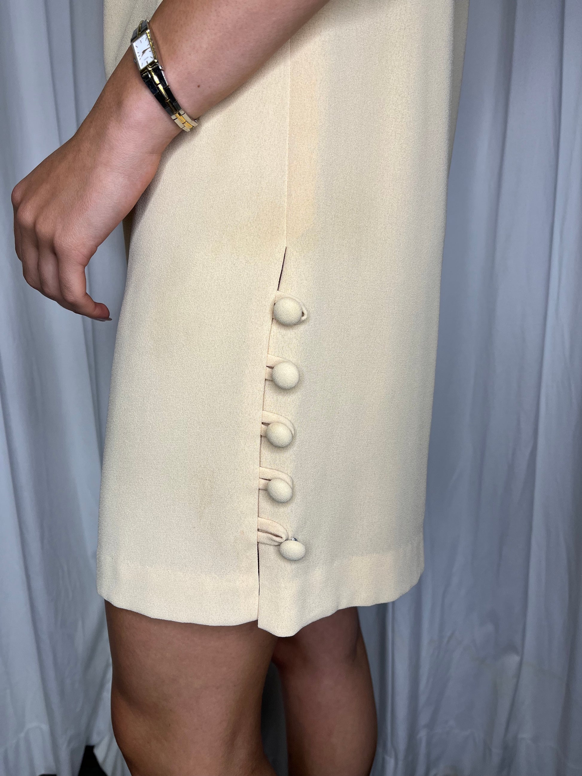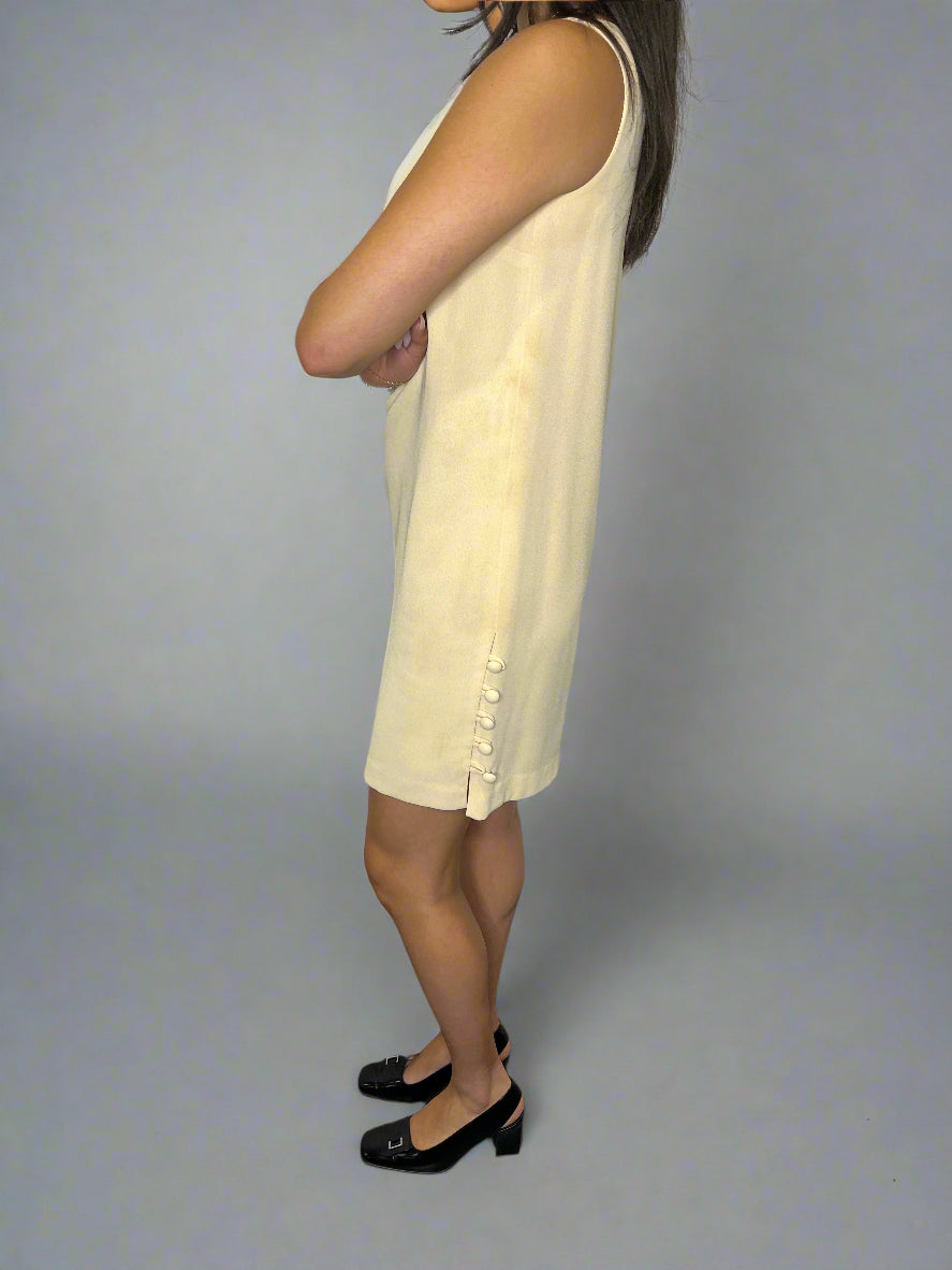 Anne Klein Cream Shift Dress with button details.