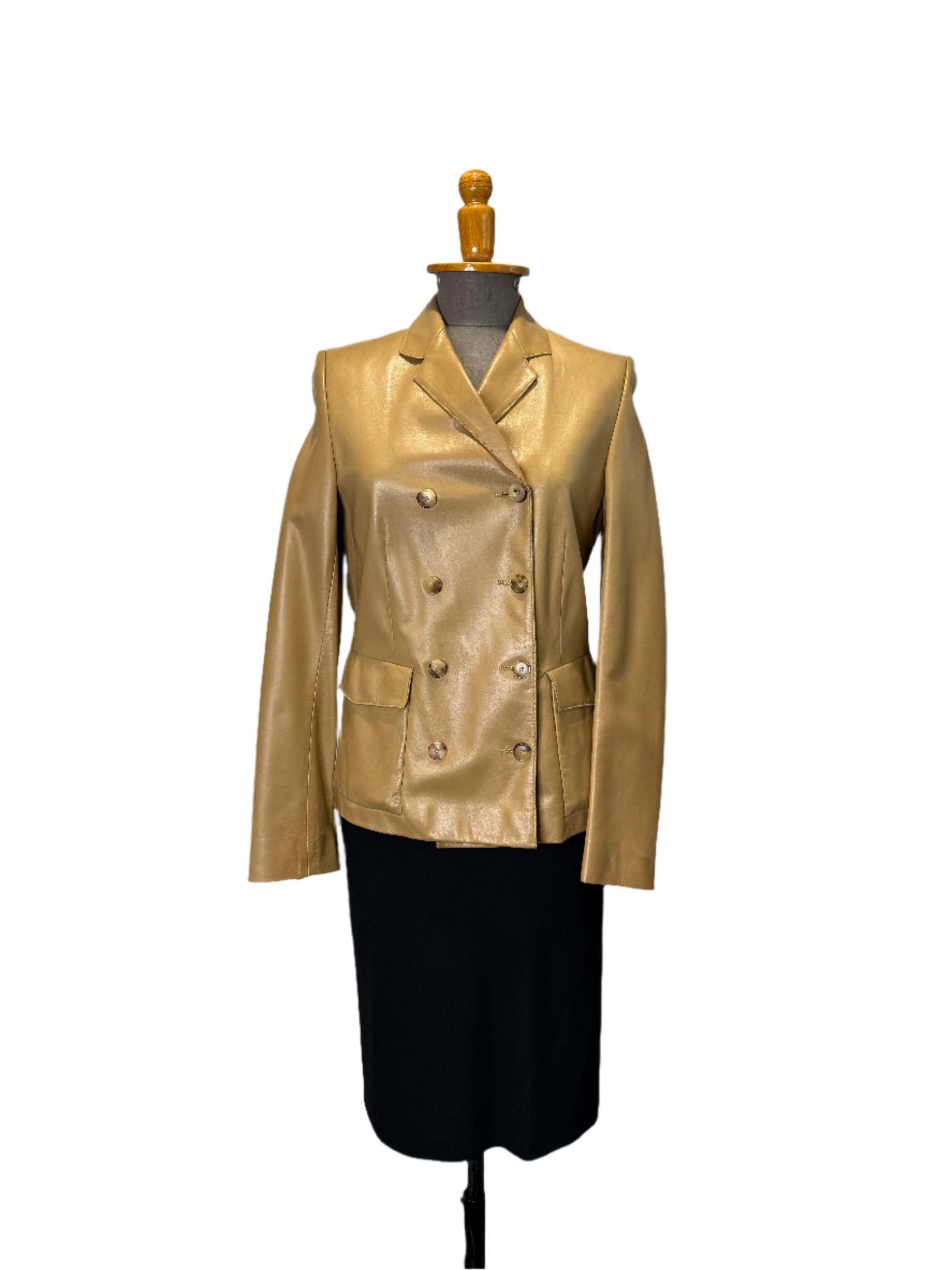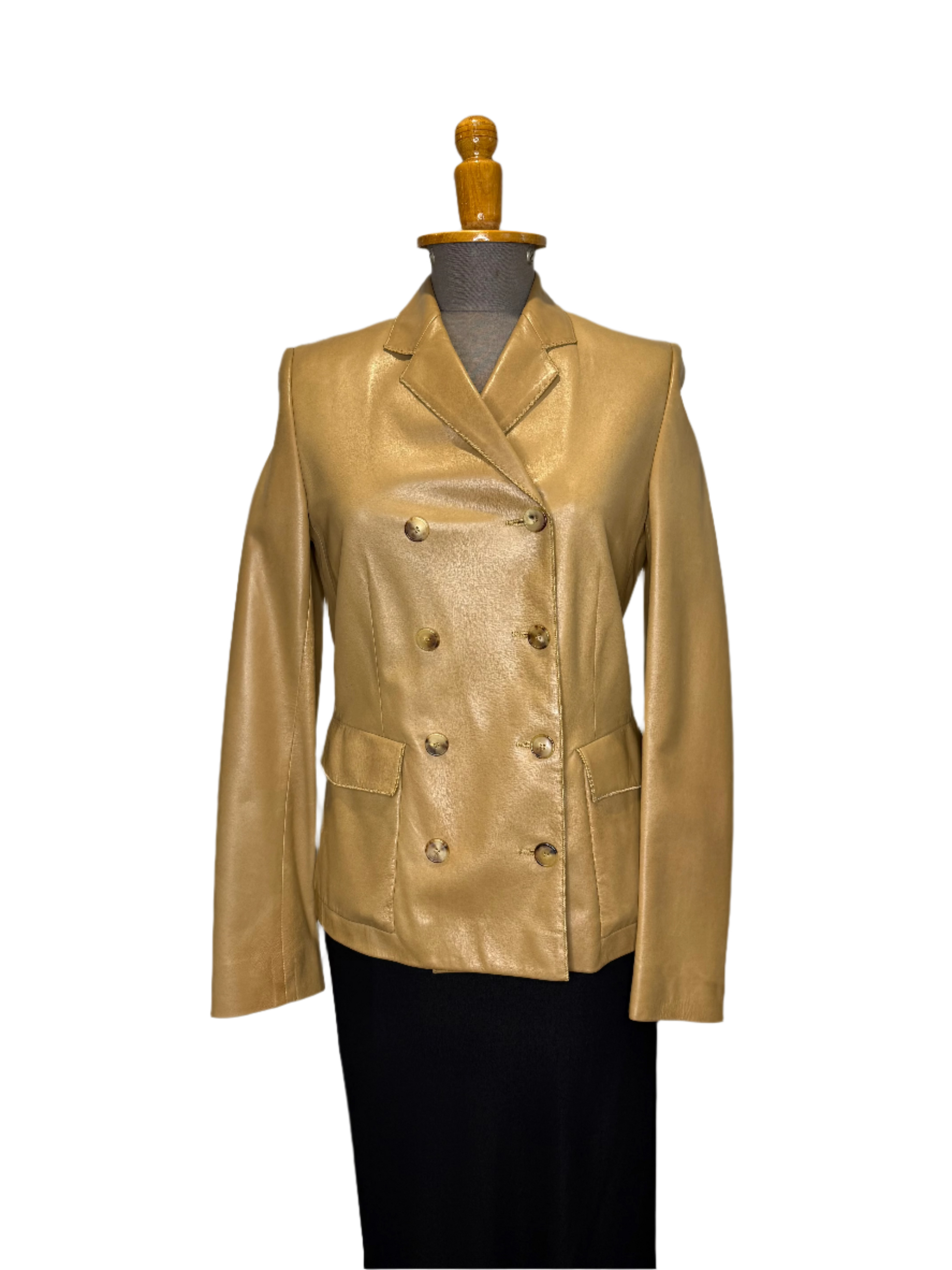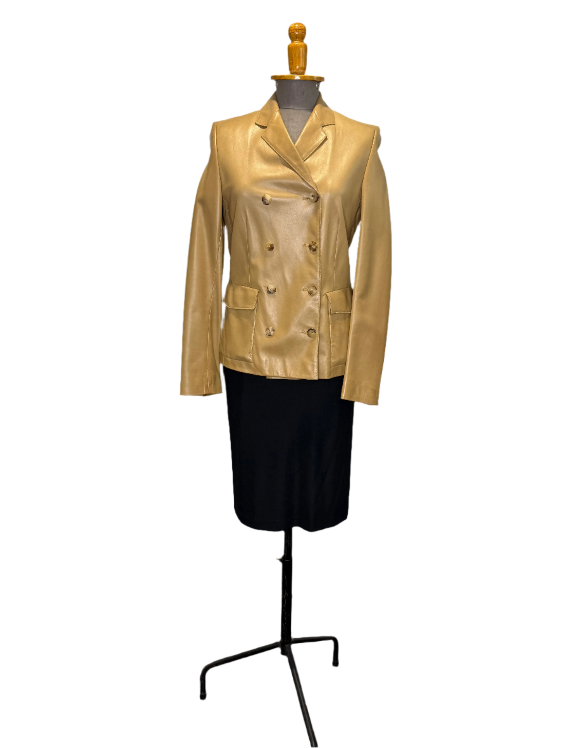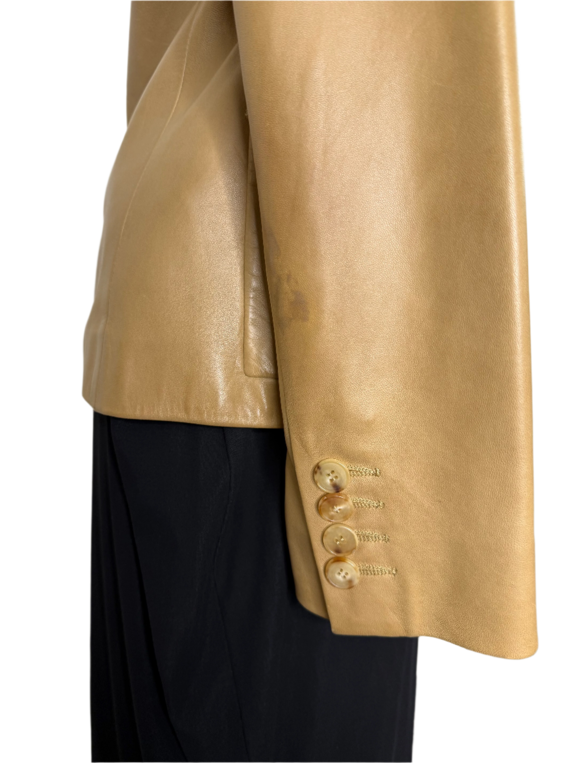 Late 90s/early 2000s Calvin Klein Collection tan 100% leather jacket with tortoiseshell buttons.